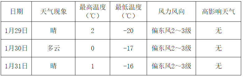 三、未来三天天气预报(1月29日-31日)