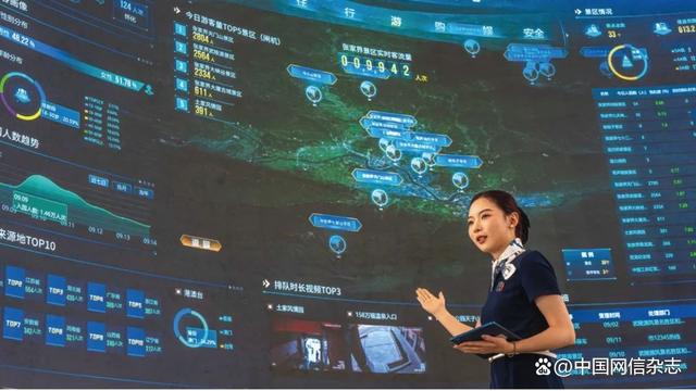 中国电信湖南公司依托5g、天翼云、人工智能等技术优势,打造了“张家界智慧旅游平台”。图为2023年5月,中国电信湖南公司工作人员介绍“张家界智慧旅游平台”。