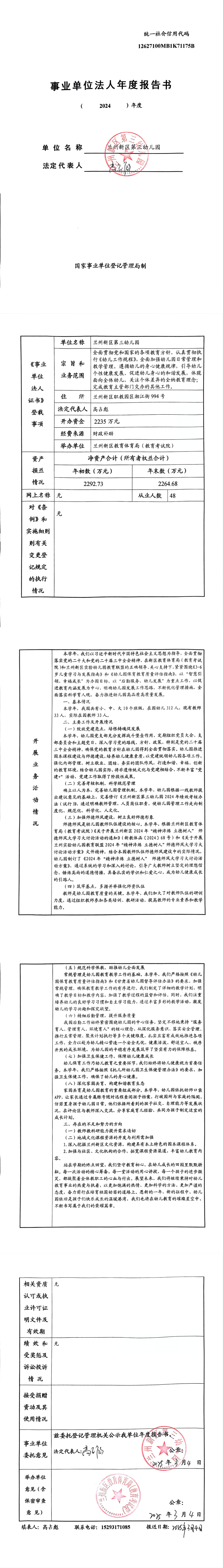 兰州新区第三幼儿园2024年事业单位法人年度报告书-捕鱼网