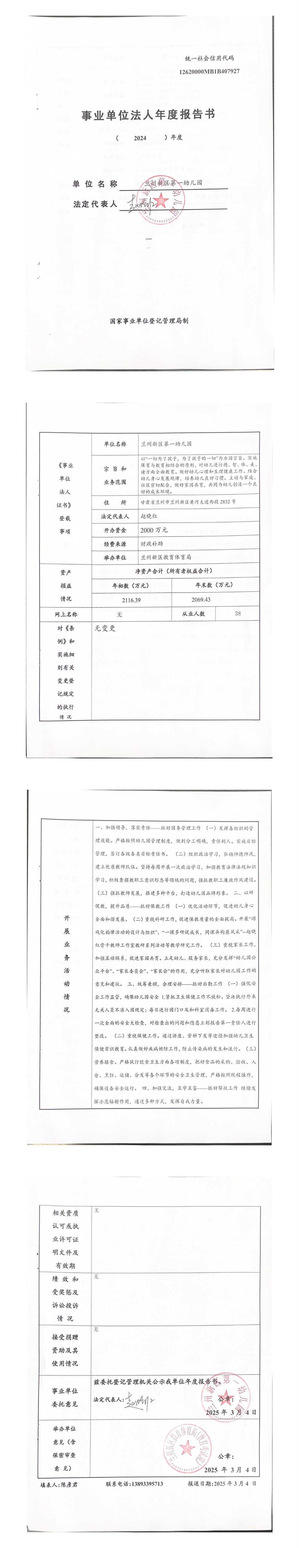 兰州新区第一幼儿园2024年事业单位法人年度报告书-捕鱼网