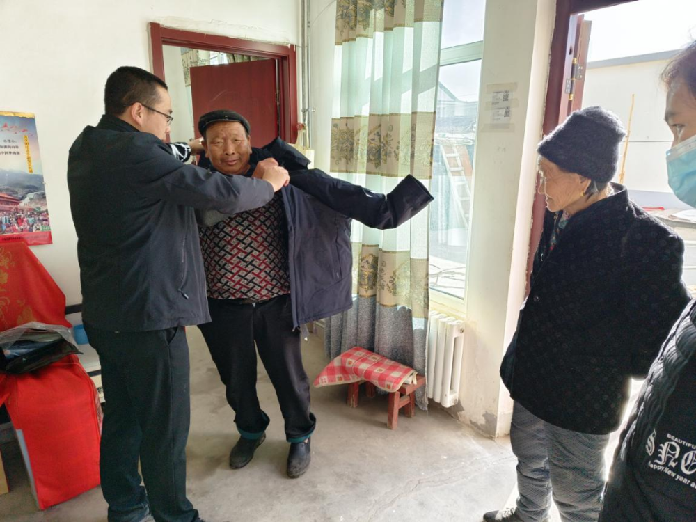 十一月的兰州新区清晨,寒风阵阵,特困供养人员虎吉生家中暖意融融,虎吉生及家人正在试穿西岔镇民政工作人员为他们送去过冬的棉衣、棉鞋等过冬衣物,“衣服好暖和啊,党和政府对我们的关心很到位。”虎吉生开心地说道。