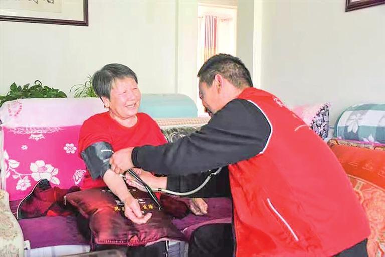 彩虹城社区卫生服务中心家庭医生上门为辖区老年患者诊疗。