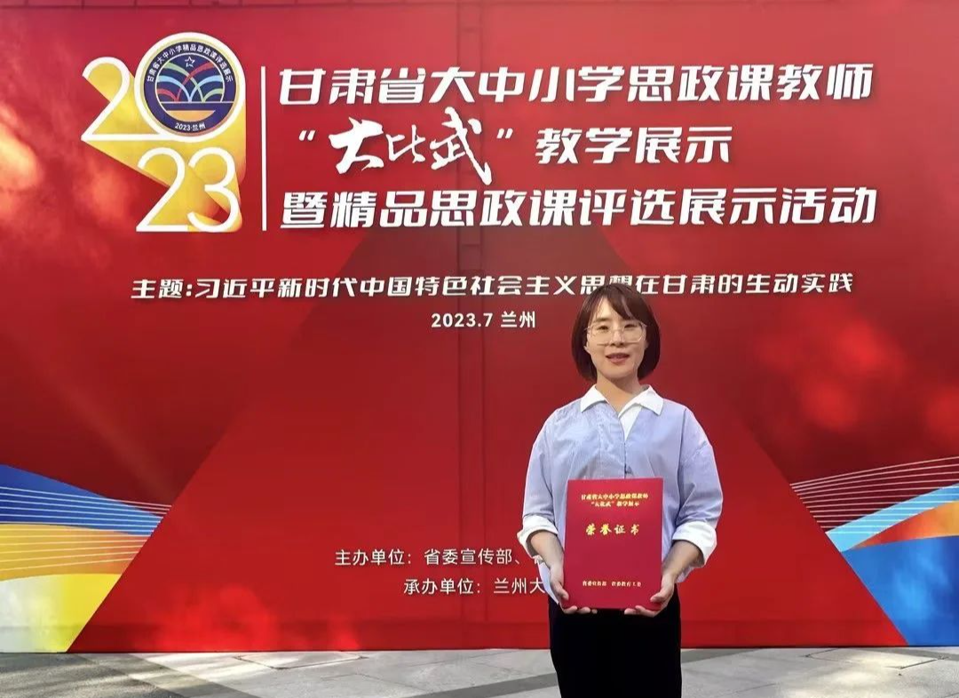 ▲兰州信息科技学院马克思主义学院教师巨澜荣获第三届全国高校思想政治理论课教学展示活动“教学竞赛单元”二等奖、2023 年甘肃省大中小学思政课教师‘大比武’教学展示暨精品思政课评选展示活动”本科研究生组一等奖等荣誉