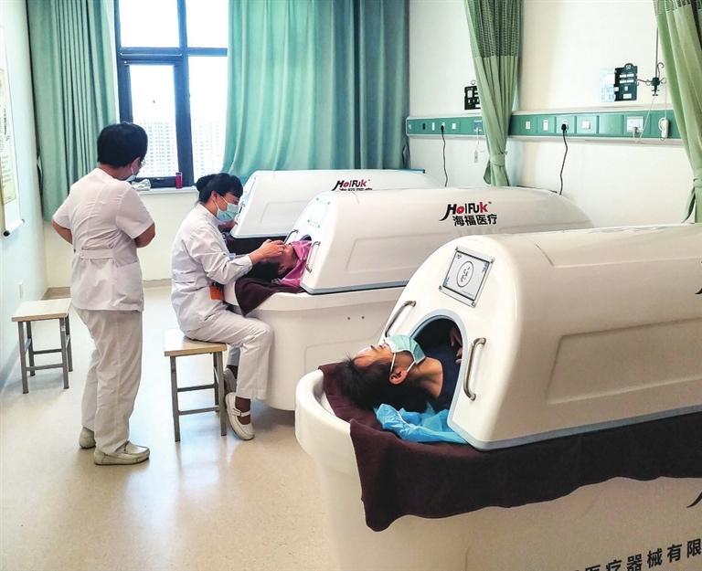 记者在现场看到,3名患者正在宛如太空舱的“艾灸床”中接受治疗。“根据传统医学‘火龙灸’的原理设计,通过艾火的纯阳温热,由热力和药物作用将艾灸中有效的成分和近、远红外线透皮吸收,起到温经散寒、行气通络、扶阳固脱、拔毒泄热、防病保健等治疗功效。”甘肃省人民医院新区分院疼痛科主任刘海鹏说。