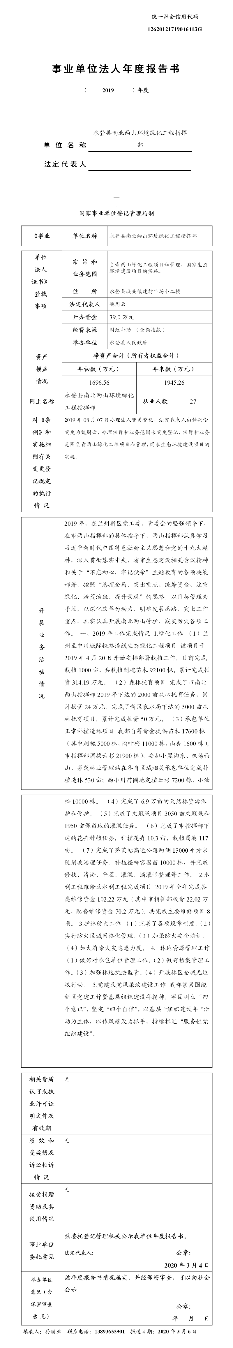 永登县南北两山环境绿化工程指挥部2019年事业单位法人年度报告书-捕鱼网
