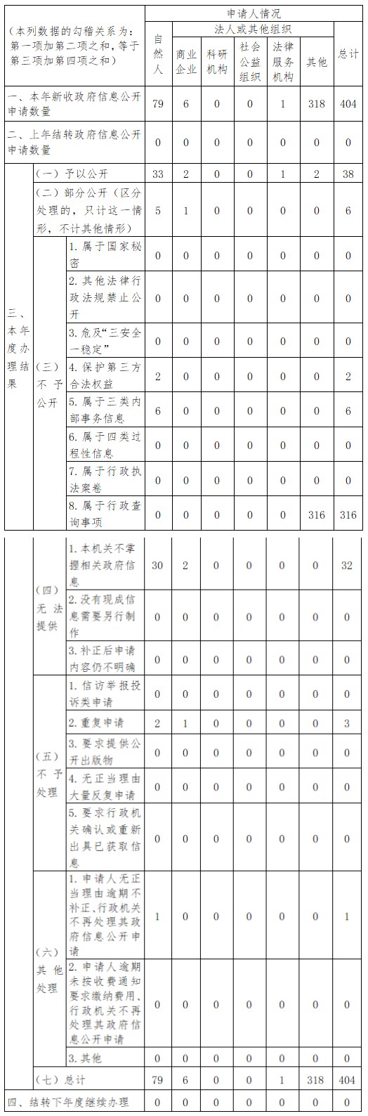 本报告根据《中华人民共和国政府信息公开条例》规定编制,全文包括总体情况、主动公开政府信息情况、收到和处理政府信息公开申请情况、政府信息公开行政复议和行政诉讼情况、存在的主要问题及改进措施、其他需要报告的事项等6个方面,所列数据统计期限为2022年1月1日至12月31日。