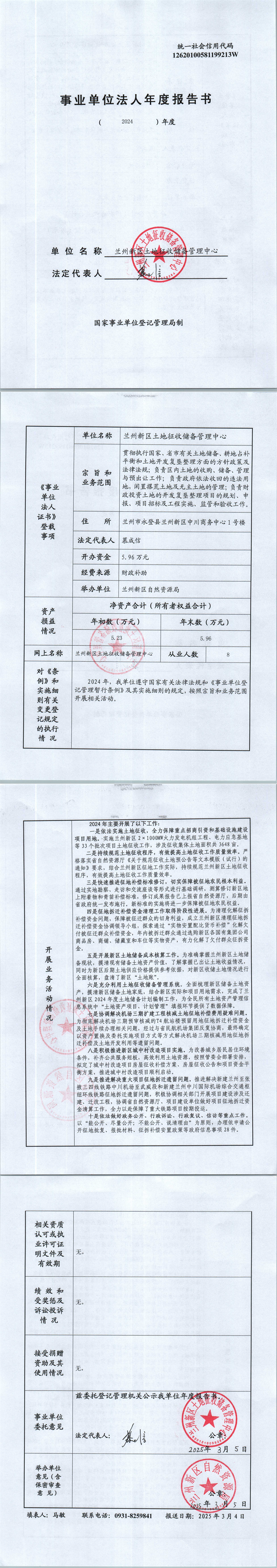 兰州新区土地征收储备管理中心2024年事业单位法人年度报告书-捕鱼网