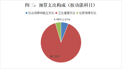 按功能科目分类,2024年预算数为702.66万元,其中社会保障和就业支出41.97万元,占比5.97%;卫生健康支出629.21万元,占比89.55%;住房保障支出31.48万元,占比4.48%。比2023年预算增加54.79万元,主要原因是人员增加。