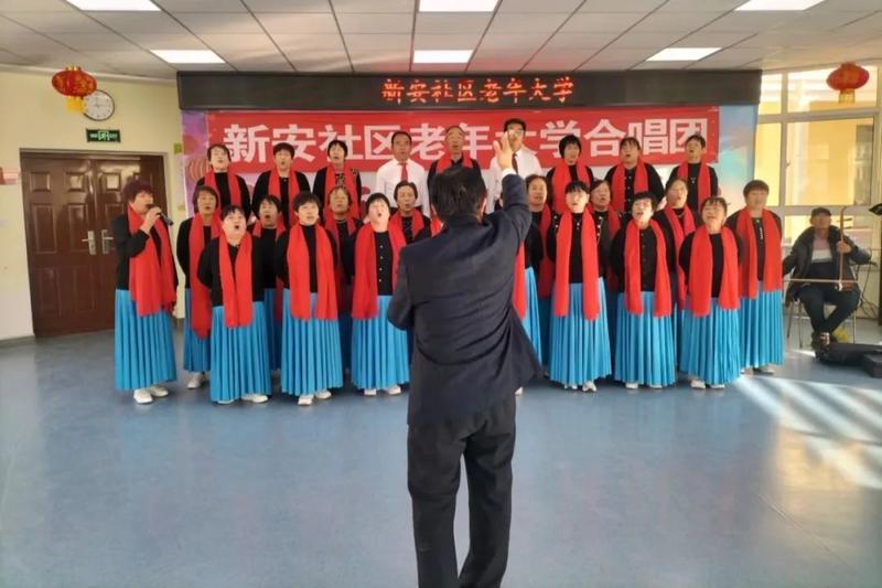 在社区的老年活动室里,学员们热情洋溢,全身心投入到唱歌的学习中。他们时而站立高歌,时而端坐清唱,歌声悠扬,充满力量。目前,新安社区“老年大学”已开设夕阳功夫扇、秦腔艺术、欢乐腰鼓、合唱、民族舞蹈等五个兴趣学习班,吸引了150余名学员参与。同时,社区依托“老年大学”组织开展10场次社区文艺活动,服务群众达1.2万人次。居民们纷纷表示,社区“老年大学”极大地满足了他们的学习需求,丰富了精神生活,使他们在家门口就能享受到优质的文化教育资源,真正实现了送课上门、送学到家。