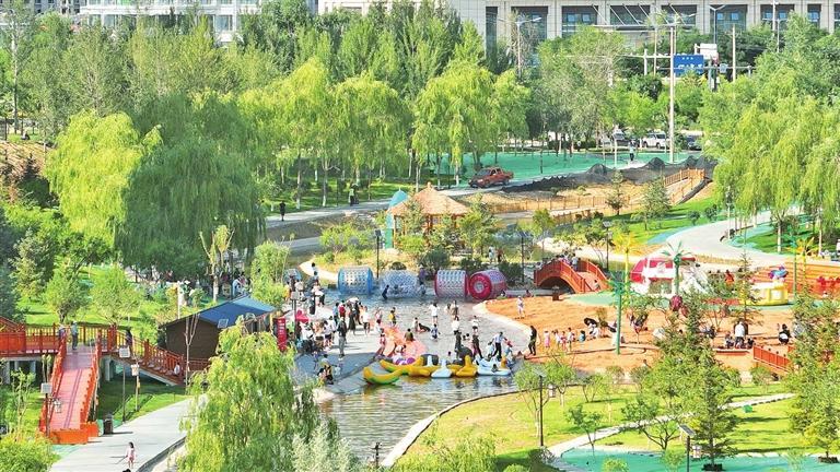 湿地公园、临港花海、栖霞湖……这些彰显新区生态特色优势的亮丽名片,是新区近年来围绕秦王川湿地公园、中川小镇等特色生态旅游度假区成功打造的。通过大力实施河道、湿地、水系、绿地景观提升工程,新区全面拓展城区绿色空间,进一步丰富沿经十三水系、栖霞湖和秦王川湿地公园生态水循环系统,按照“推窗见绿、出门见园、行路见荫、驻足有湖”的美好愿景,构建“15分钟绿色生活圈”,建成一批城市绿廊、绿带、主题公园、口袋公园。
