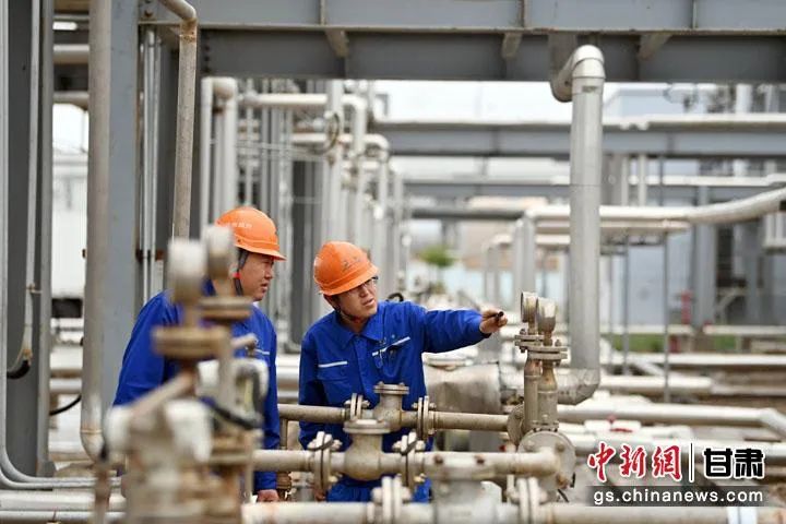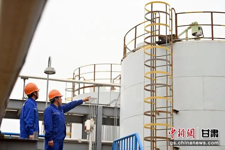 图为兰州助剂厂仓储中心张鹏军和化一车间田小洲在原料灌区巡检阀门。九美旦增 摄