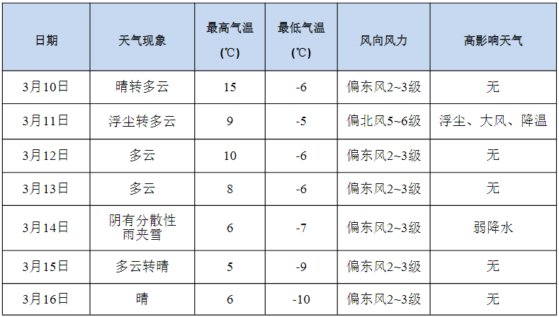 一、未来一周(3月10日—3月16日)天气趋势预报