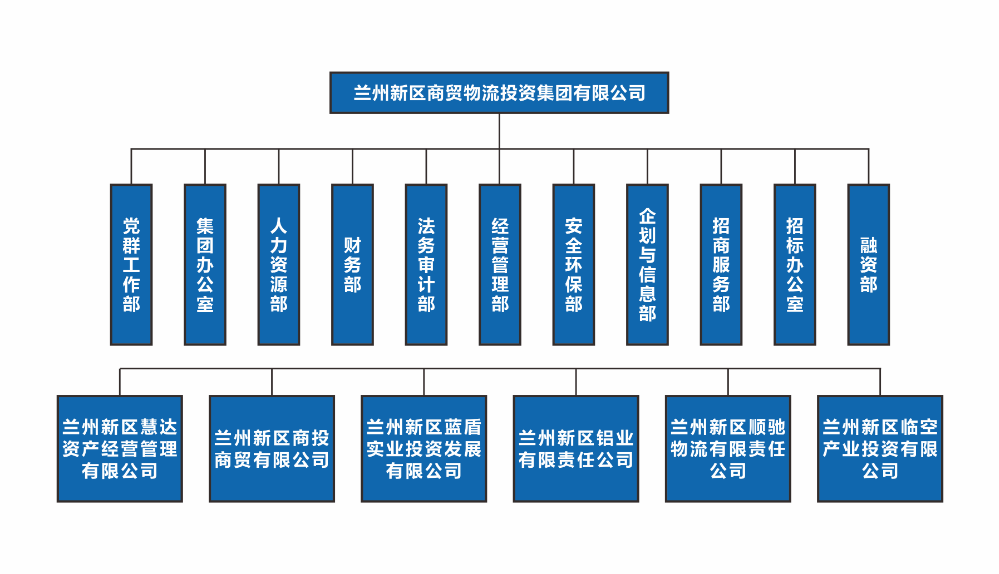 兰州新区商贸物流投资集团有限公司(简称:兰州新区商投集团)是兰州新区管委会直属的大型国有独资企业,组建于2017年4月,现有总资产161.2亿元,下设慧达公司、商投商贸公司、铝业公司、蓝盾实业投资发展有限公司、顺驰物流公司、临空产业投资有限公司等子公司。