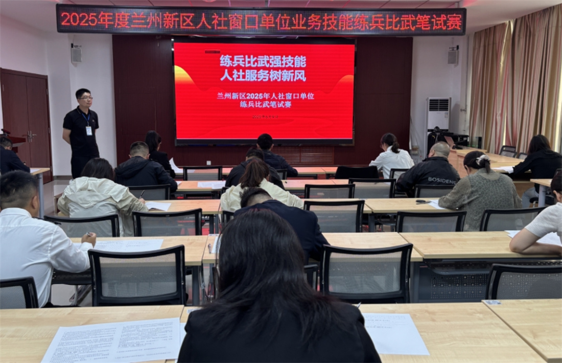 6月9日,兰州新区民政司法和社会保障局举行2025年度兰州新区人社窗口单位业务技能练兵比武,旨在通过岗位练兵、业务比武,锻造一支政治坚定、业务精湛、作风优良的人社服务铁军。