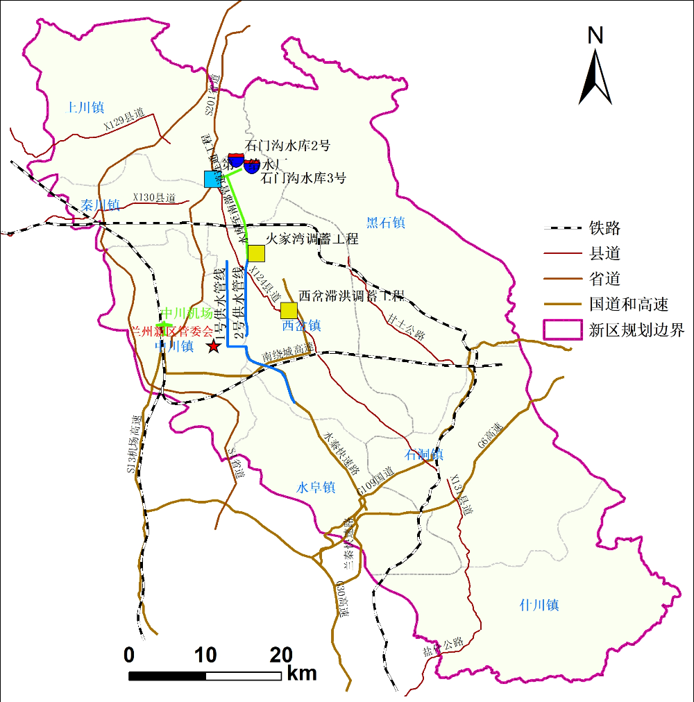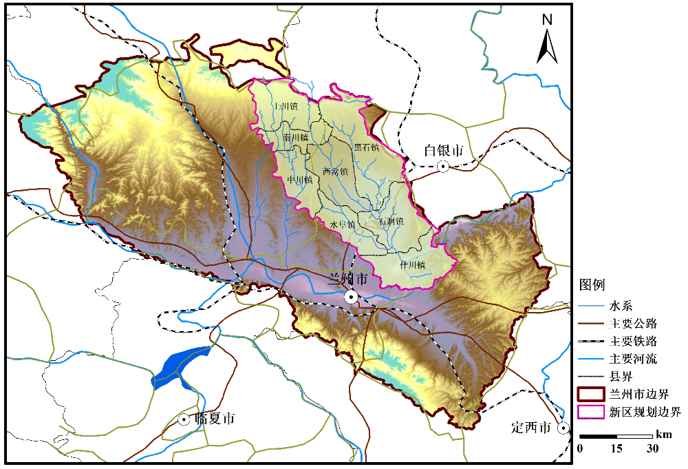 按照兰州新区管理委员会关于“十四五”规划编制工作统一安排部署,兰州新区水务部门委托兰州大学编制了《兰州新区“十四五”水利发展规划》,本次规划范围包括原国务院批复涉及的5个镇(秦川、中川、西岔、上川、水阜),以及与“区县合一”密切相关的皋兰县黑石镇、石洞镇、什川镇3镇。规划总面积2845km2,规划基准年为2020年,规划期为2021~2025年。