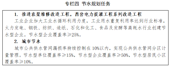 1.积极发展节水型产业,通过技术改造等手段,加大企业节水工作力度,促进各类企业向节水型方向转变;新建企业必须采用节水技术,促进节水技术的推广应用。