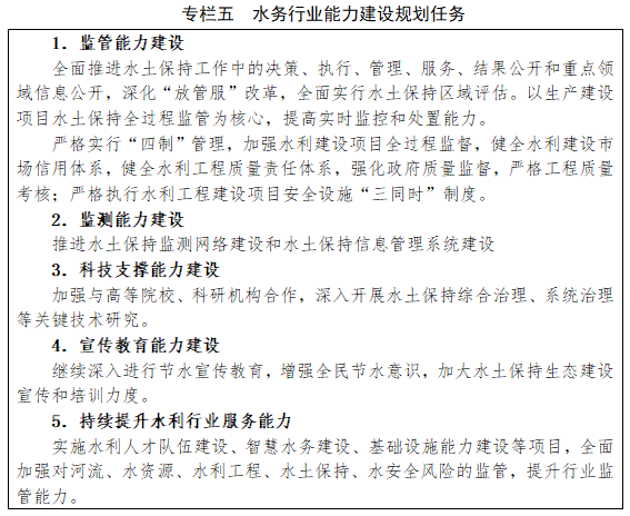 持续提升水利行业服务能力。按照党中央关于全面深化改革的总体部署,积极践行“水利行业强监管”,以健全水法制体制为基础,通过实施水利人才队伍建设、智慧水务建设、基础设施能力建设等项目,全面加强对河流、水资源、水利工程、水土保持、水安全风险的监管,提升行业监管能力;通过整合现有防汛抗旱、水利建设、水资源管理、河湖保护、城乡供水、农业灌溉、水土保持等各类水利数据,以信息技术与水务业务深度融合为基础,加快水信息监测、水行政管理、便捷化服务和高效化决策能力建设,提升水行政执法能力和灾害预测、预警及应急处置能力。