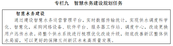 智慧水务建设工程投资0.62亿元。包括兰州新区智慧化水务工程、农村供水工程智能化改造。