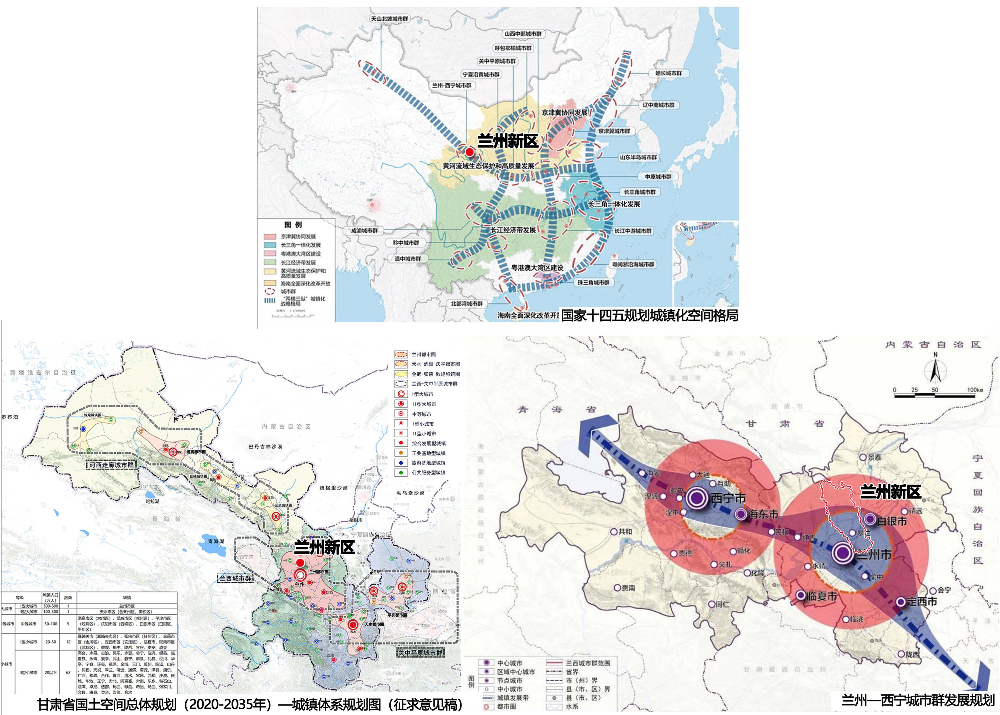国务院批复兰州新区规划面积1744km2,涉及永登县和皋兰县,包括中川镇、秦川镇、上川镇、树屏镇、西岔镇和水阜镇6个乡镇,73个行政村。本次规划按兰州市行政区划调整预案,与《兰州新区国土空间总体规划(2021-2035)》一致,规划范围2845km2,包括原国务院批复涉及的5个乡镇(已托管3镇(秦川、中川、西岔)、正在按程序推动托管的上川、水阜2镇),以及与“区县合一”密切相关的皋兰县黑石镇、石洞镇、什川镇3镇(见图1-2和附图1)。