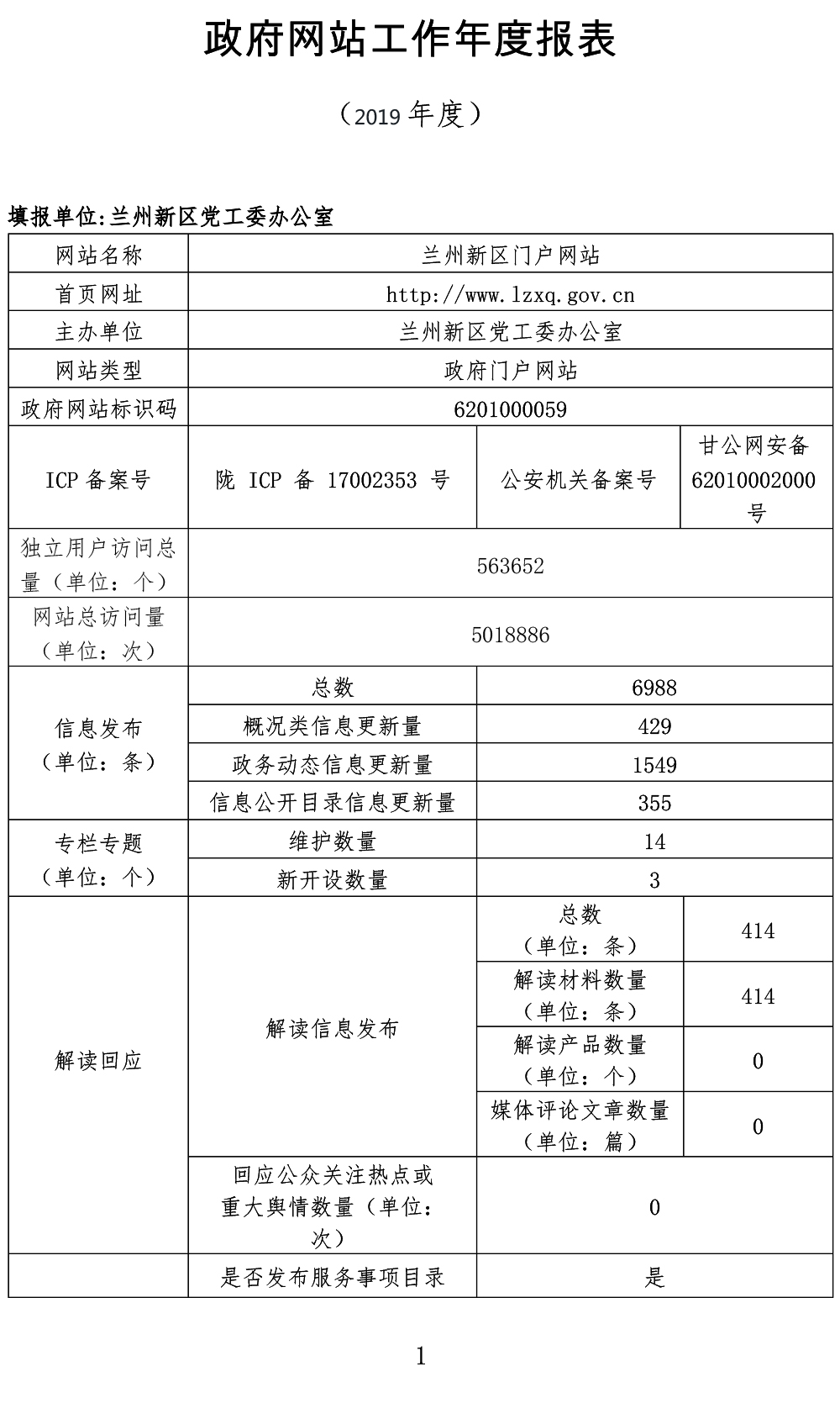 兰州新区门户网站工作年度报表(2019年度)-捕鱼网