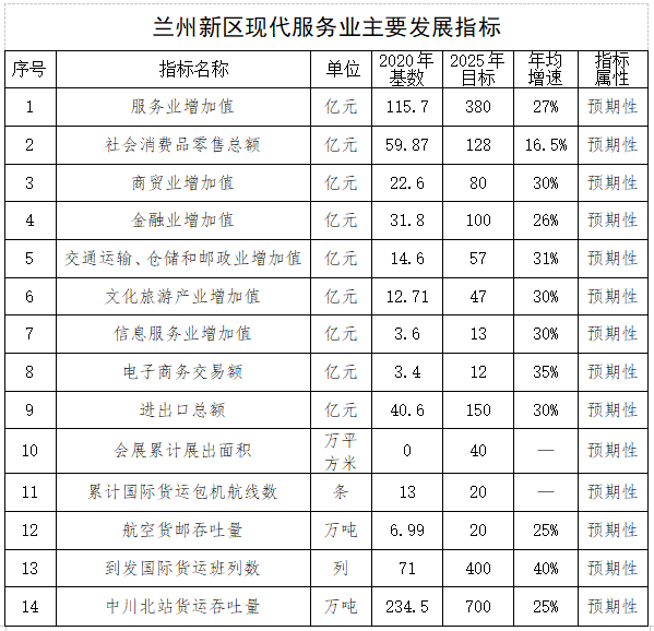 ——产业规模快速增长。现代服务业增加值稳步提高,成为推动兰州新区经济转型升级的主要支撑。到2025年,兰州新区服务业增加值达到380亿元,占地区生产总值比重达到48%。