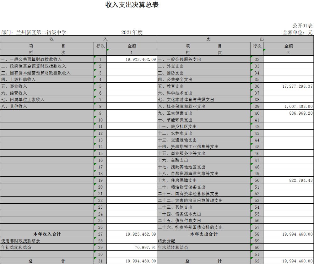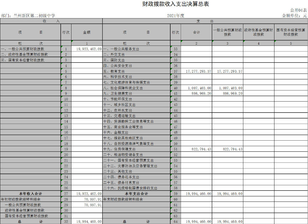 2021 年度收、支总计1,999.45万元。收、支较上年决算数增加863.99万元,增长76.09%,主要原因是2021年教师绩效工资纳入年初预算由本单位自行核算发放,而上年该项支出由教体局纳入预算核发。