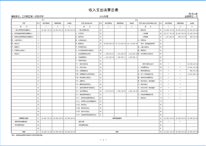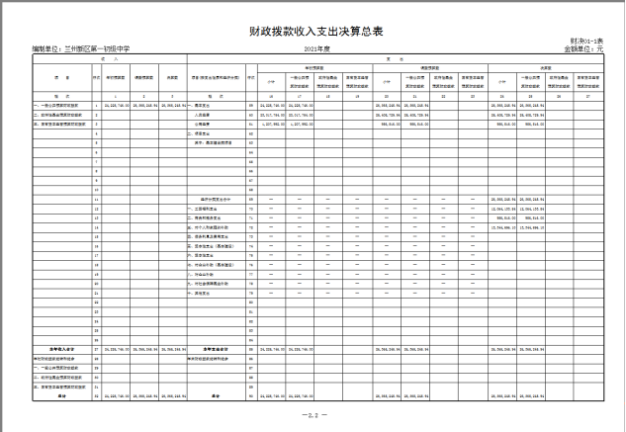 2021年度收、支总计2636.52万元。收、支较上年决算数增加1131.78万元,增长42%,主要原因是2021年兰州新区第一初级中学人员经费增加。