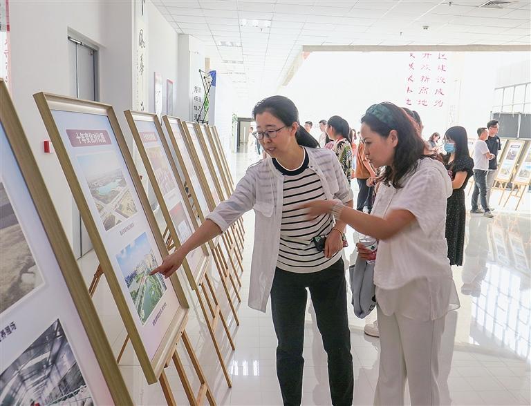 6月11日,新区以“筑梦新时代·奋斗兰台人”为主题,在综合档案馆开展主题宣传和“新区档案五年”集中展览活动。图为活动现场干部群众驻足宣传展架前参观。