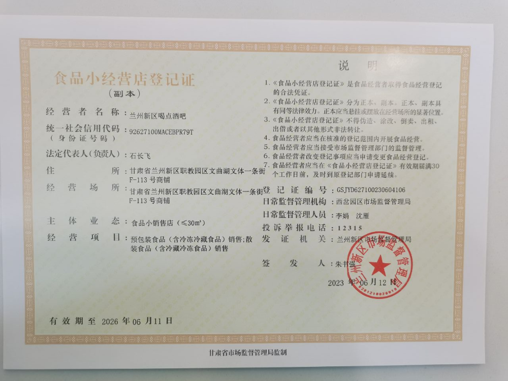 兰州新区喝点酒吧食品经营许可证-捕鱼网