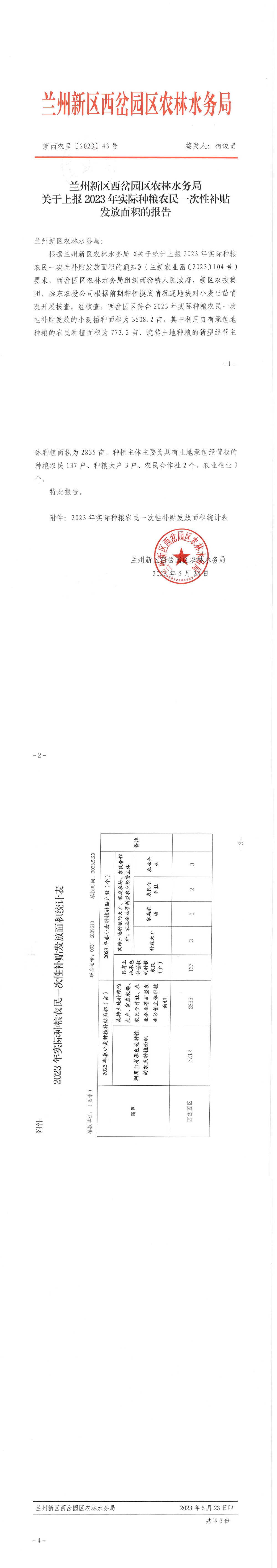 关于上报2023年实际种粮农民一次性补贴发放面积的报告-捕鱼网