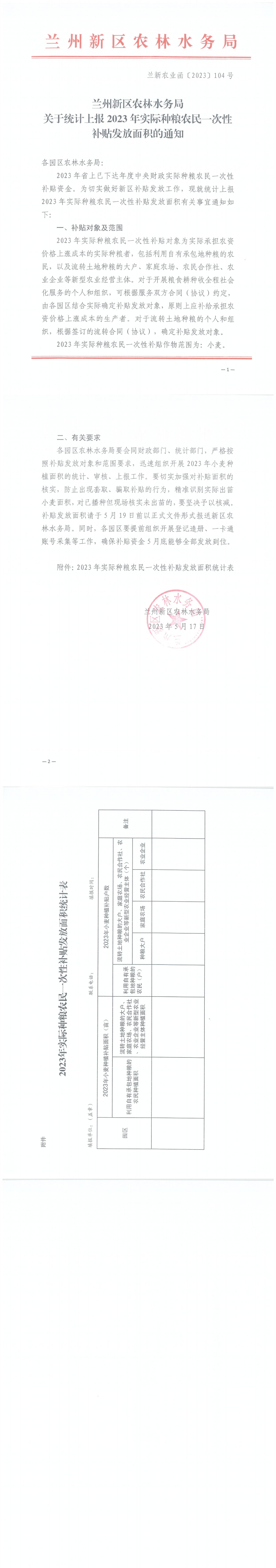 关于统计上报2023年实际种粮农民一次性补贴发放面积的通知-捕鱼网