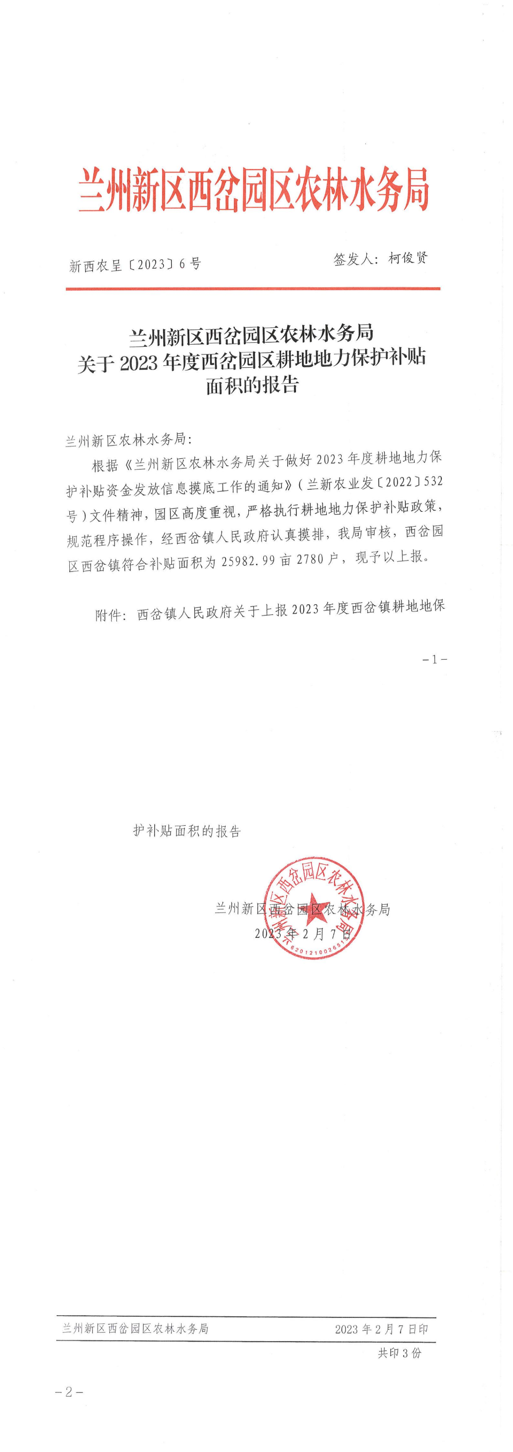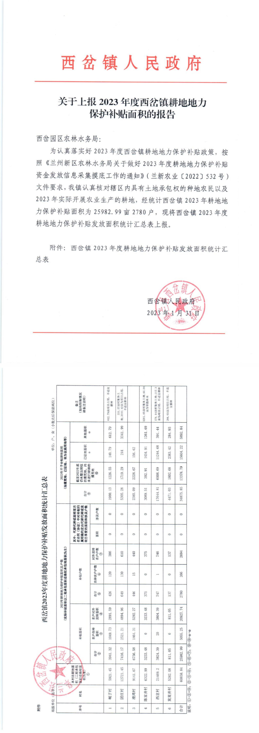 兰州新区西岔园区农林水务局关于2023年度西岔园区耕地地力保护补贴面积的报告-捕鱼网