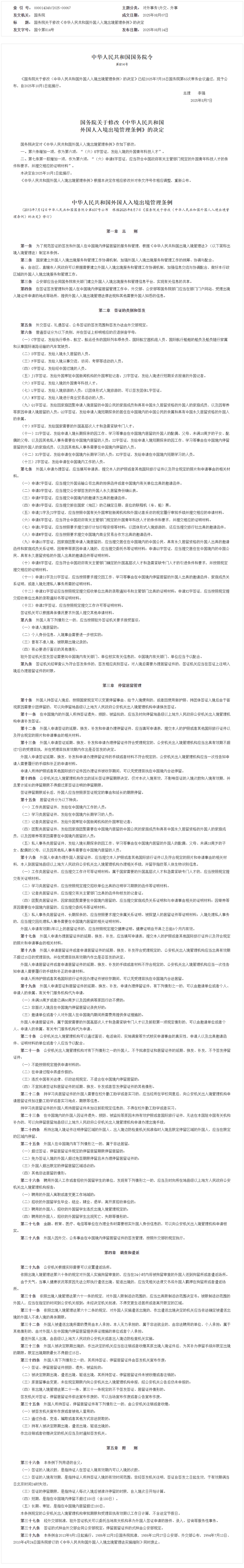 国务院关于修改《中华人民共和国外国人入境出境管理条例》的决定