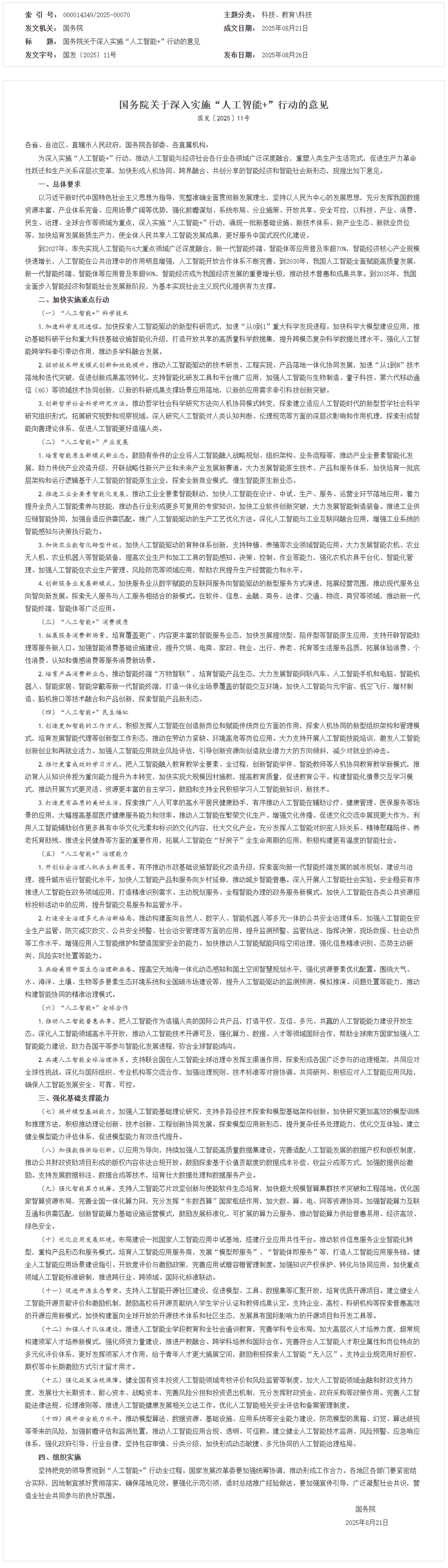 国务院印发《关于深入实施“人工智能 ”行动的意见》