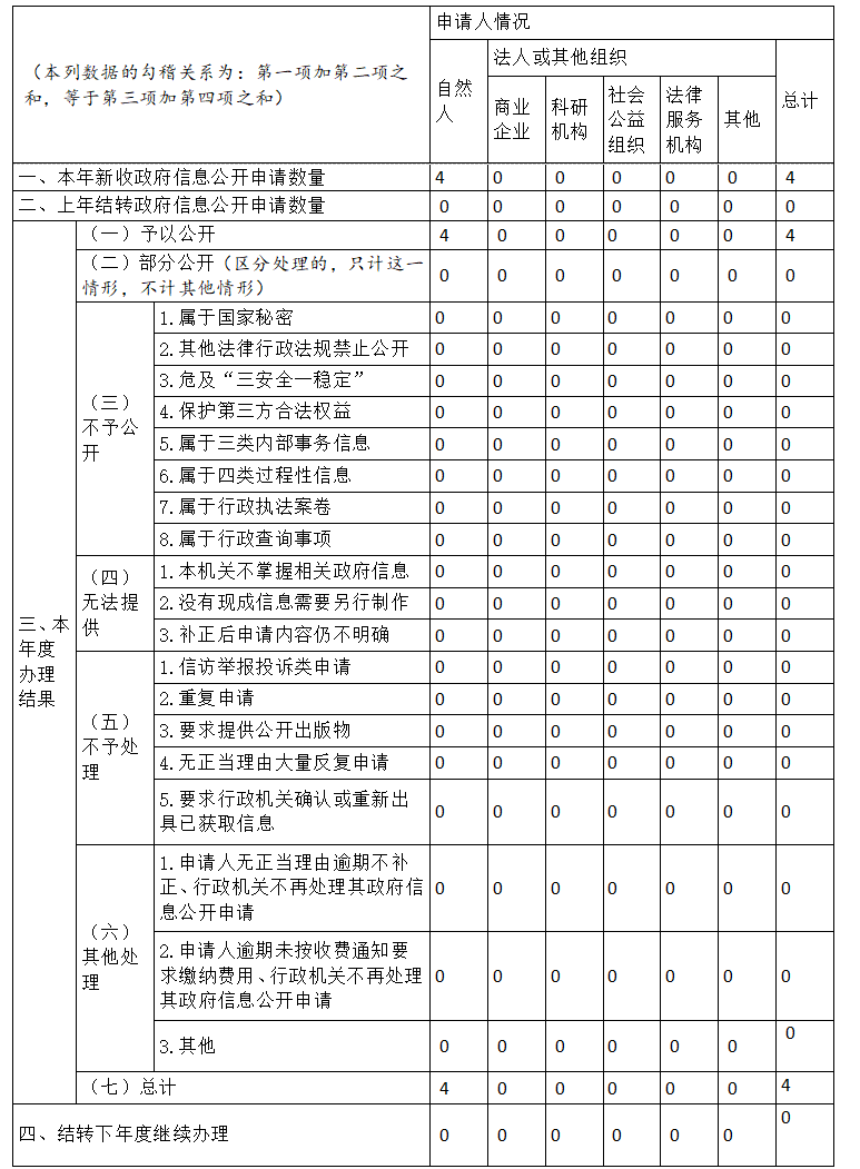 三、收到和处理政府信息公开申请情况