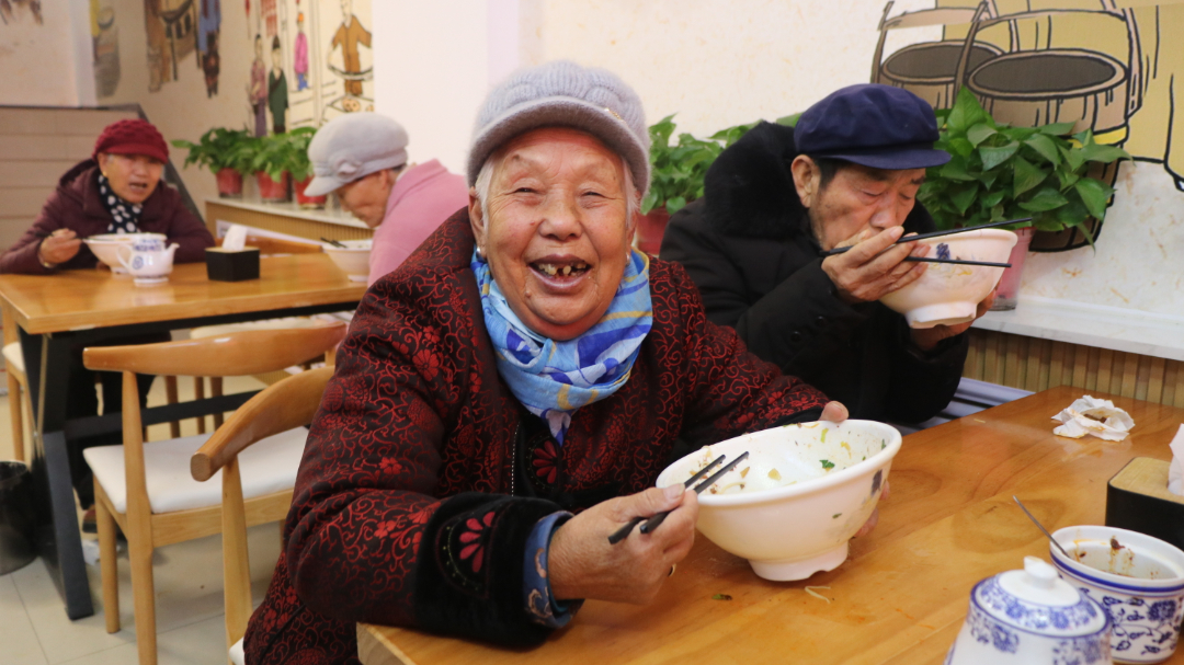 “平常我一个人生活,嫌做饭麻烦,有了社区大食堂就太方便了,一下楼就能吃到热乎的饭菜,价格亲民,营养均衡,炸酱面、扁豆面、打卤面、臊子拌面……面面俱全。只需8元(会员价6元)就能吃到色、香、味、形俱佳的饭菜。”社区独居老人李大爷说。