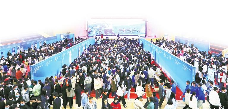 “才聚新区·筑梦新城”重点高校巡回引才招聘会现场。