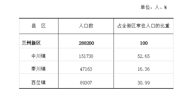 全新区常住人口中,居住在城镇的人口为167044人,占57.96%;居住在乡村的人口为121156人,占42.04%。