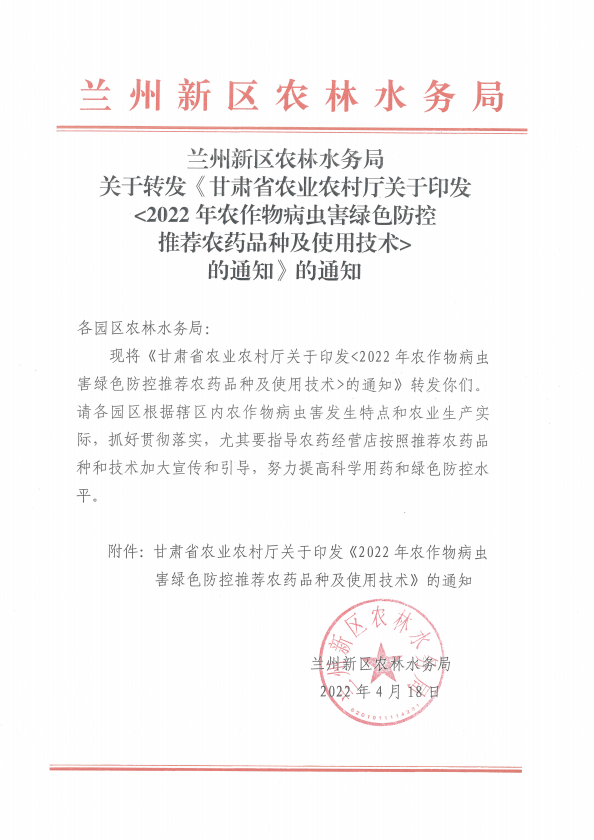 关于转发《甘肃省农业农村厅关于印发2022年农作物病虫害绿色防控推荐农药品种及使用技术的通知》的通知-捕鱼网