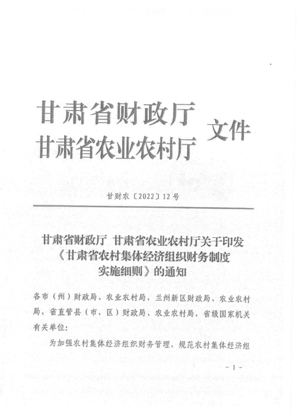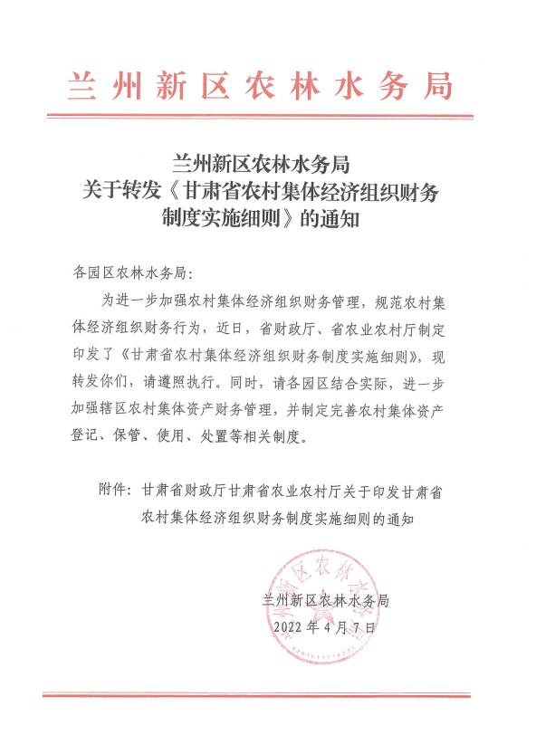 关于转发《甘肃省农村集体经济组织财务制度实施细则》的通知-捕鱼网