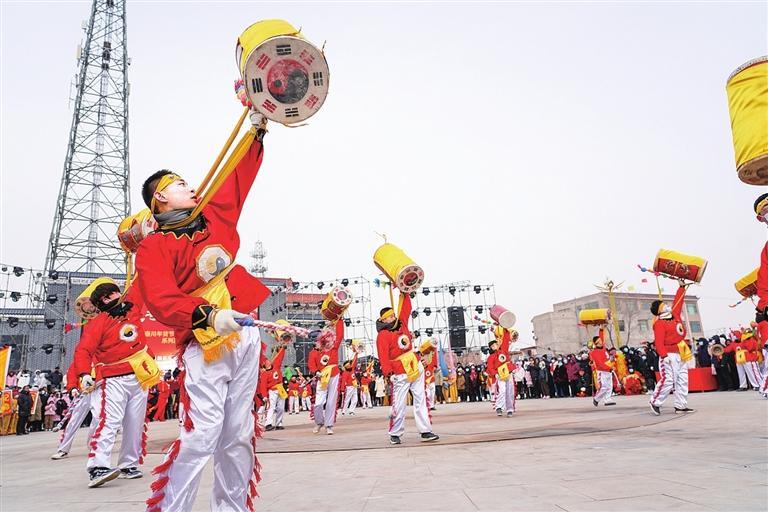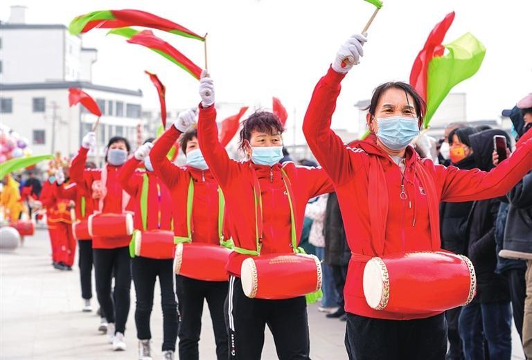 春节期间,社火欢庆的锣鼓声,伴随着送暖的春风,为新区增添了浓浓的年味。
