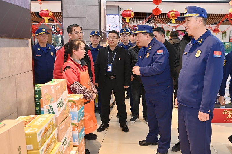 在京都商业广场陆军总队长听取了场所负责人关于日常消防安全管理,近期开展消防培训、消防宣传情况的汇报,实地检查了场所消防器材配置,疏散通道畅通情况。“请问假如现在超市发生火灾,你作为工作人员应该怎么做?”在世贸大润发超市陆军总队长随机抽查工作人员“四个能力”掌握情况,并对防火卷帘进行联动测试。在瑞岭国际酒店消控室督导组对值班人员是否落实岗位职责,是否持证上岗,自动消防设施是否完好有效,消防维保情况等进行详细检查,现场抽查值班人员能否熟练操作各类消防设施,叮嘱单位负责人必须严格落实值班值守,做到常练常考,有备无患,确保每名消控制值班人员熟练操作各类消防器材设施,发生紧急情况能够灵活应对处置。在沿街商铺检查组对配备的消防器材进行检查,现场指导场所工作人员操作使用消火栓出水灭火。