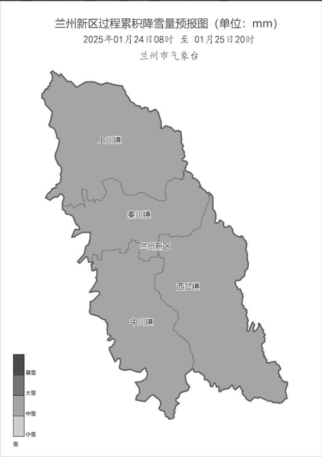 图1:兰州新区累积降雪量预报图(24日08时至25日20时)