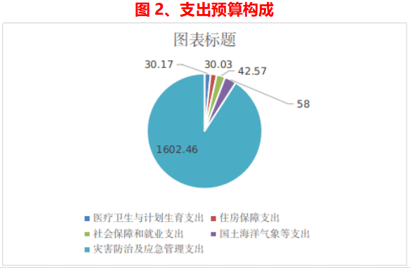 2025年一般公共预算支出1763.22万元,包括:医疗卫生与计划生育支出30.17万元、住房保障支出30.03万元、社会保障和就业支出42.57万元、国土海洋气象等支出58万元、灾害防治及应急管理支出1602.46万元。