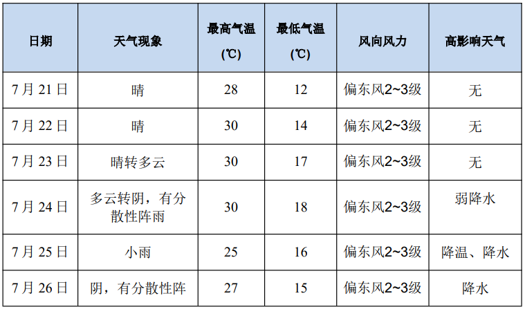 一、未来一周(7月21日-7月27日)天气趋势预报