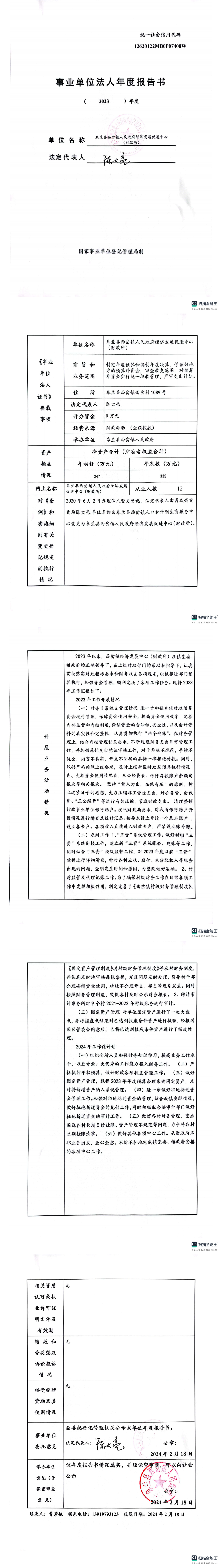 皋兰县西岔镇人民政府经济发展促进中心(财政所)2023年度事业单位法人年度报告书-捕鱼网