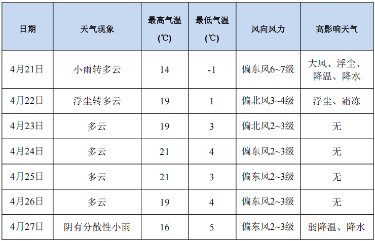 一、未来一周(4月21日—4月27日)天气趋势预报