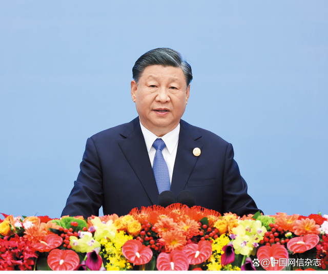 2023年10月18日上午,国家主席习近平在北京人民大会堂出席第三届“一带一路”国际合作高峰论坛开幕式并发表题为《建设开放包容、互联互通、共同发展的世界》的主旨演讲。图/新华社记者 王晔 摄