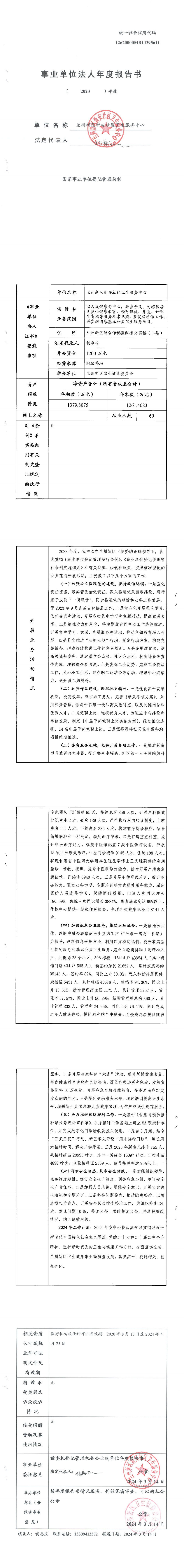 兰州新区新安社区卫生服务中心2023年度事业单位法人年度报告书-捕鱼网