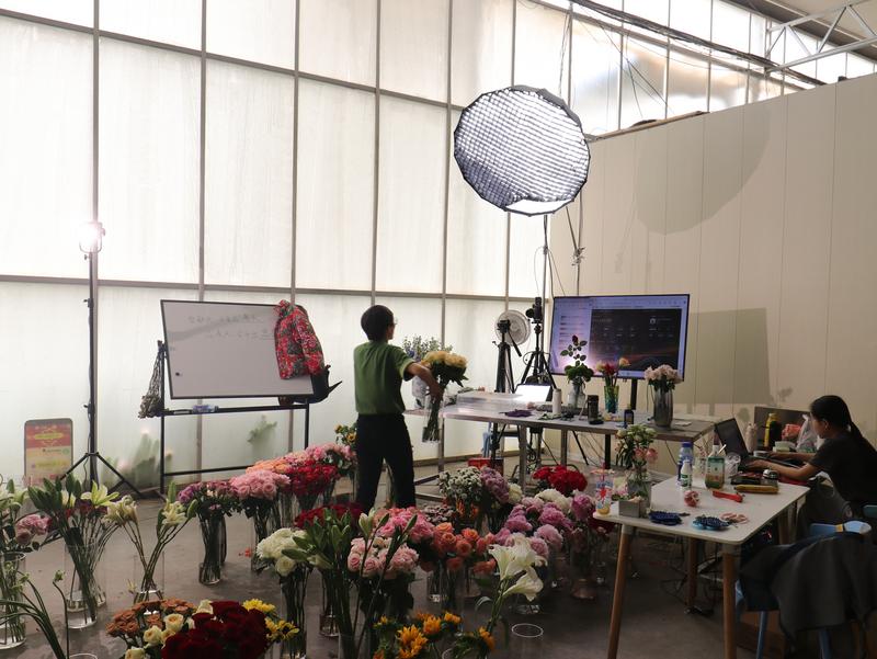 “欢迎大家来到我们的直播间,大家现在看到的鲜花都是我们农投集团自产的鲜花。”在鲜切花包装现场,直播补光灯前主播正在向直播间的粉丝们介绍不同的花卉。除了线下销售,线上销售也呈现出供销两旺态势。